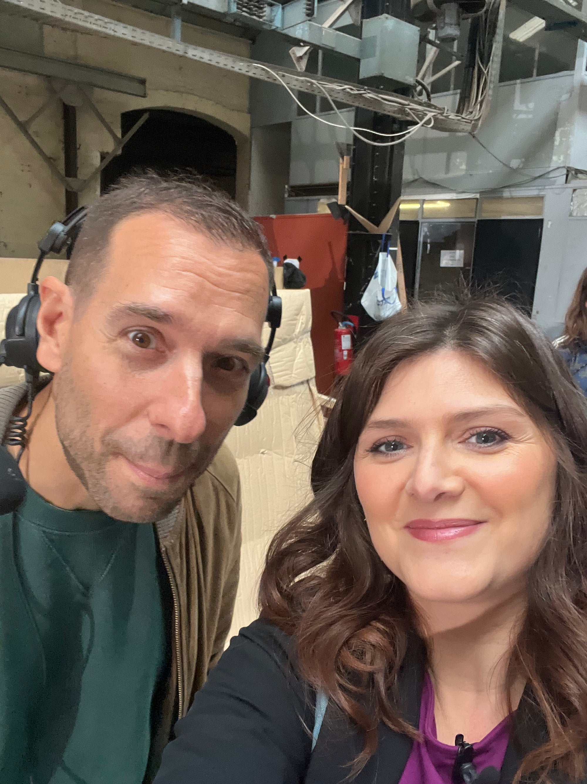 Cécilia, enceinte jusqu’aux yeux à huit jours de son terme, devait zapper le tournage. À la dernière minute, on improvise une visio avec elle sur le plateau.